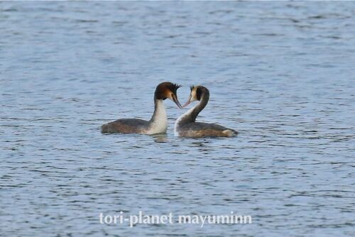 テレビで、カンムリカイツブリが求愛行動で 2羽並んで、ダンスのような事をしているのを見た事があります。 中々ユニークで(本人たちは真剣でしょうが) いつかそういうのが見れるといいなーと、思ってるのですが こちらはケンカなのか、じゃれてるのか、…